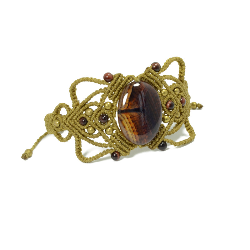 Verwendete Materialien: Gewachster Polyestergarn, roter Achat, rote Tigeraugenperlen, Messingperlen